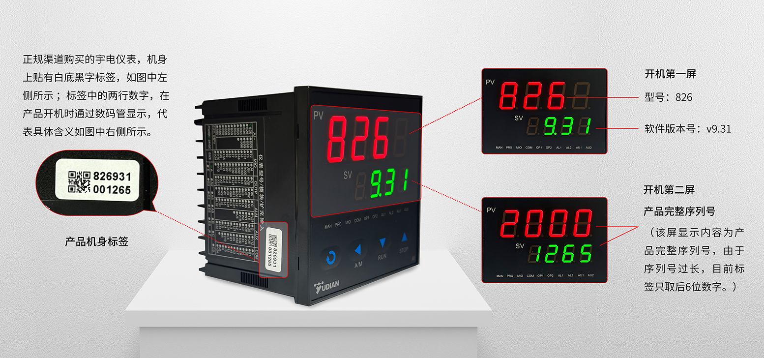 以往的經(jīng)典產(chǎn)品型號(hào),您可通過撥打宇電400-880-9029官方服務(wù)熱線,提供產(chǎn)品序列號(hào),我們來為您鑒別儀器真?zhèn)巍? 自2022年宇電推出的新一代產(chǎn)品后,產(chǎn)品序列號(hào)開機(jī)即可顯示,若機(jī)身序列號(hào)與標(biāo)簽一致為正品。